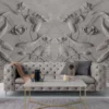 The detailed carving style creates a strong 3D depth illusion, making the wall look like a hand-crafted stone artwork. This mural is ideal for feature walls in living rooms, bedrooms, offices, hotels, lounges, and luxury interior projects where a sophisticated and designer look is required.