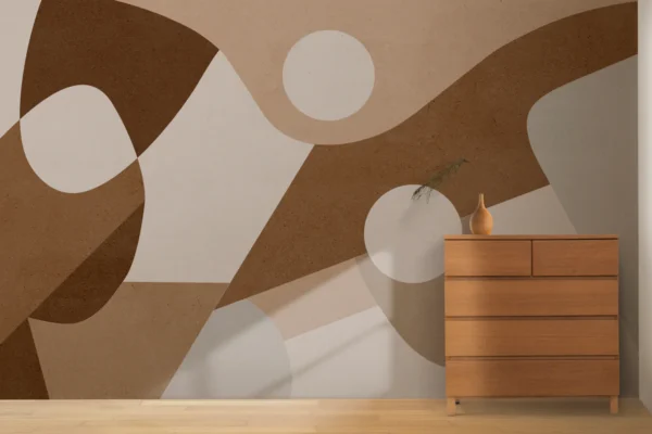 A modern abstract wall mural featuring geometric shapes in warm earthy tones, perfect for creating a clean, stylish, and contemporary interior look.