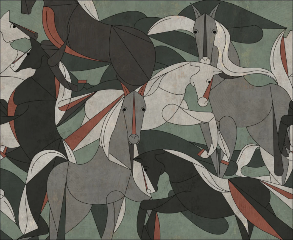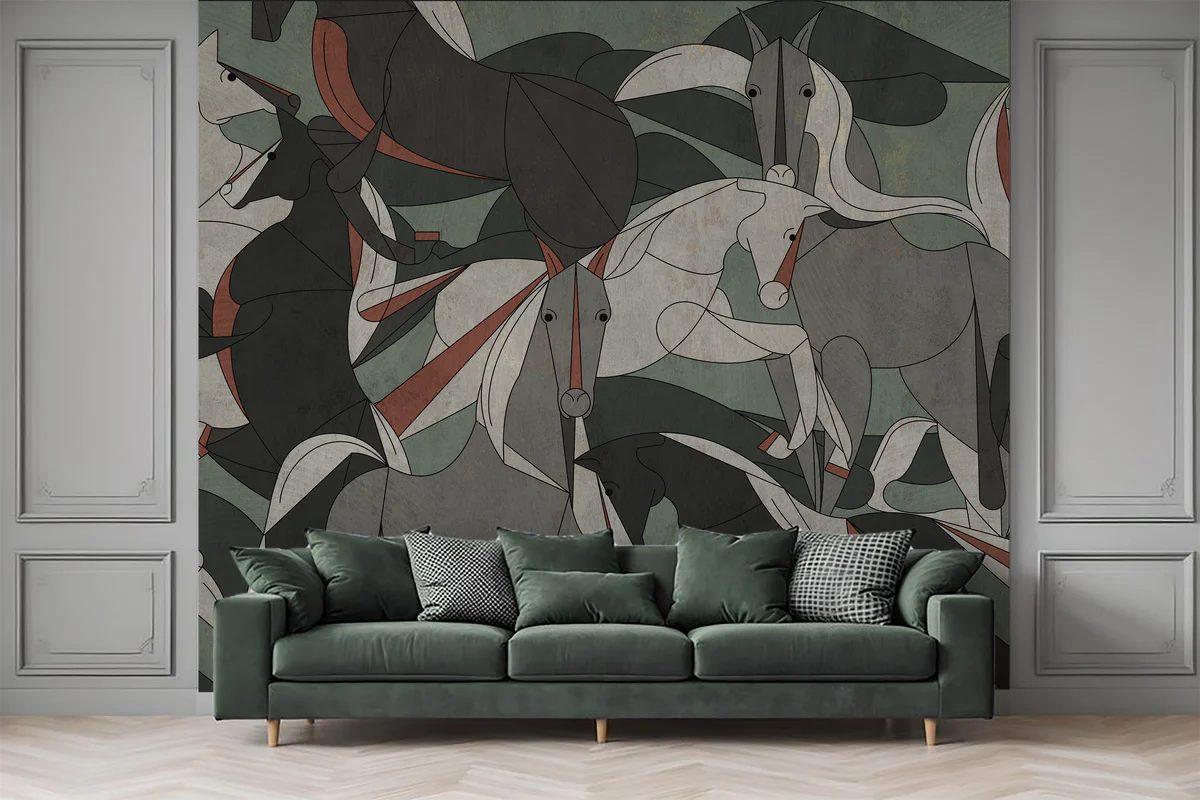 The Abstract Horse Art Wall Mural is a striking fusion of modern art and nature, designed for interiors that demand attention. Featuring stylized horses in a geometric, cubist-inspired form, this mural transforms a simple wall into a gallery-like statement piece.