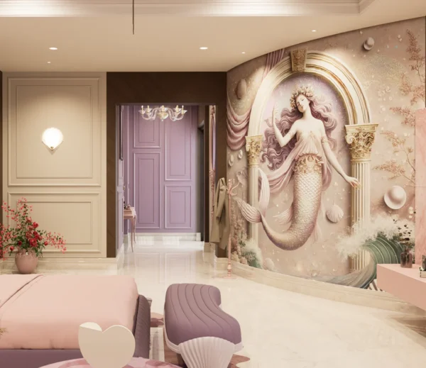 Perfect for luxury bedrooms, statement living spaces, boutique interiors, and creative rooms, this wall mural adds depth, storytelling, and timeless charm. Printed in ultra-high resolution on premium wallpaper materials, every detail—from shimmering scales to flowing hair—is beautifully captured for a refined, gallery-like finish.
