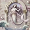 Step into a world of elegance and fantasy with the Ethereal Mermaid Goddess Wall Mural, a breathtaking fusion of classical art and dreamy ocean mythology. This mural features a graceful mermaid goddess framed within ornate arches, surrounded by flowing fabrics, seashells, waves, and soft celestial textures.