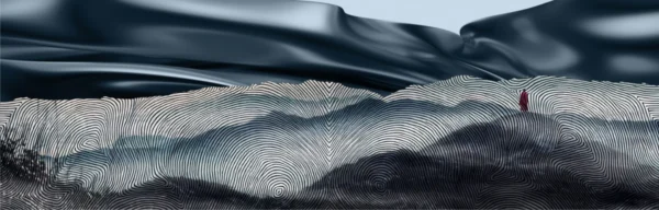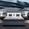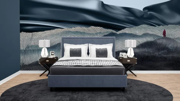 The High Peak Contour mural is a striking fusion of topographic art and abstract design. Flowing contour lines shape the mountains, while deep navy waves above create a dramatic and luxurious atmosphere.