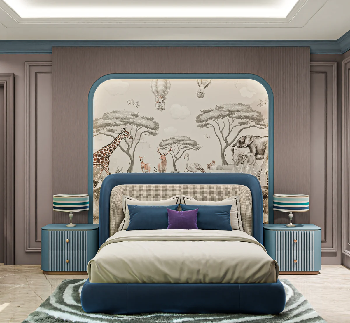 A soft, dreamy safari-themed mural designed to bring calm adventure into kids’ rooms.