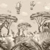 Unlike bright cartoonish wallpapers, this mural uses neutral beige and earthy tones, making it perfect for modern homes that want a kids-friendly design without compromising on aesthetics.