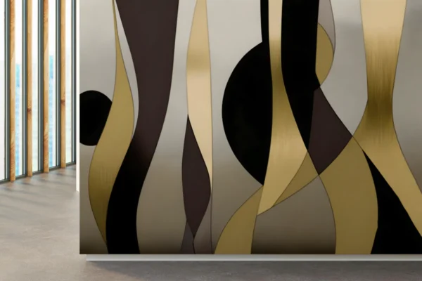 This wall mural features a luxury abstract design with flowing golden waves, bold black shapes, and soft beige tones that create a rich and elegant atmosphere. The smooth curves and metallic style pattern give the wall a premium designer look, making it perfect for modern homes, luxury interiors, offices, hotels, and studio spaces. The combination of gold, black, and neutral shades adds depth and sophistication while keeping the design balanced and stylish. This mural works beautifully with modern furniture, warm lighting, and contemporary décor, making it ideal for feature walls. Printed using high quality technology on premium wall covering materials, the mural delivers sharp details, smooth texture, and long lasting durability. Available in multiple material finishes, the mural can be customized according to your wall size for a seamless and professional installation.