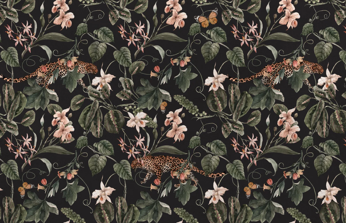The Midnight Jungle Wall Mural is designed for those who want a rich, dramatic, and ultra-luxury interior vibe. Featuring sleek leopards, delicate florals, and lush foliage on a deep black background, this mural instantly transforms any space into a high-end designer environment.
