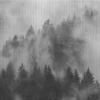 The Misty Pine Silence mural captures the quiet beauty of a fog-covered forest in a refined monochrome palette. Layers of pine trees emerge softly through the mist, creating depth, mystery, and a sense of calm stillness.