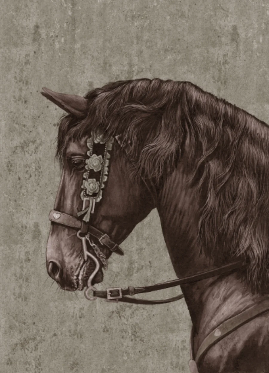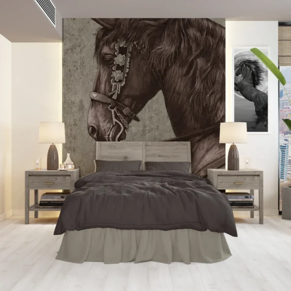 The intricate detailing of the horse’s mane, harness, and expression gives this mural a luxury art-piece feel, making it more than just wallpaper—it becomes the centerpiece of the room.