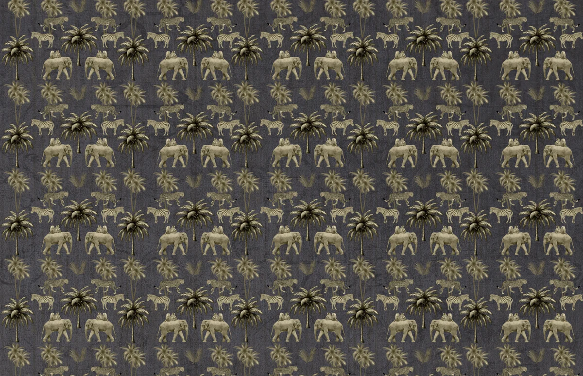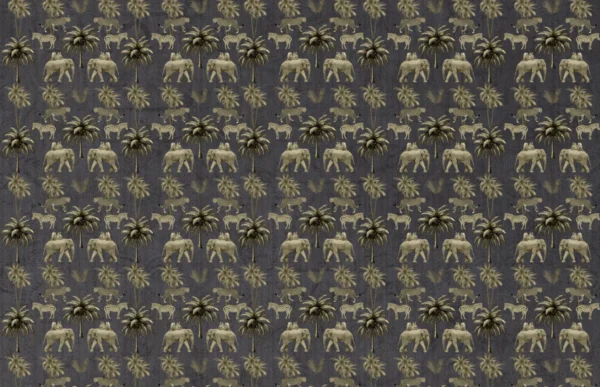 The Royal Safari Pattern wallpaper brings a refined jungle theme into modern interiors with a perfectly balanced repeating design. Featuring elephants, zebras, leopards, and palm trees, the pattern creates a sense of rhythm and sophistication across the wall.