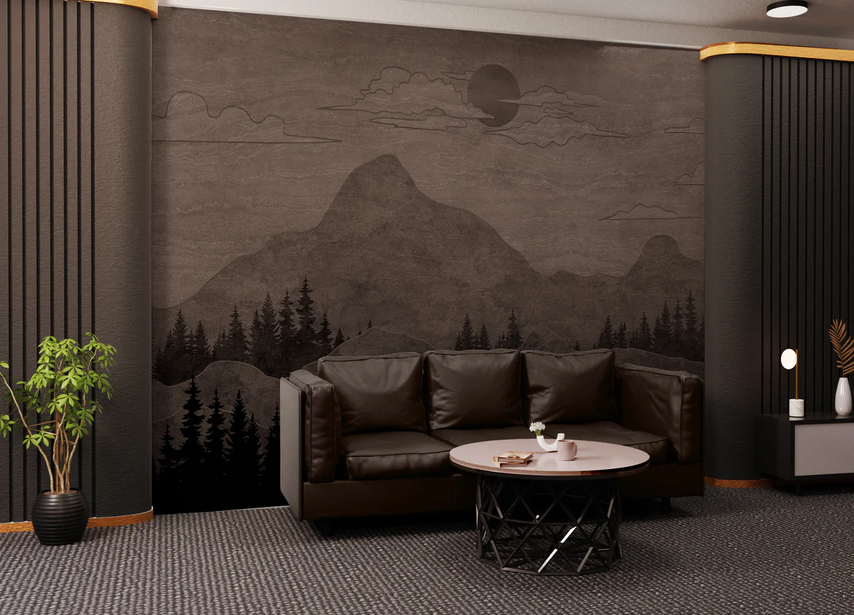 Perfect for those who prefer understated luxury, this mural enhances interiors with a calm, grounded, and sophisticated vibe. The dark aesthetic pairs beautifully with leather furniture, wooden textures, and warm lighting, making it ideal for modern living rooms and upscale spaces.