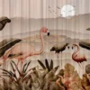 The Tropical Flamingo Elegance mural brings a perfect blend of nature, art, and luxury into your interiors. Featuring graceful flamingos surrounded by tropical leaves, florals, and soft layered landscapes, this design creates a rich and visually captivating environment.
