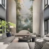 The muted green and earthy tones are carefully balanced to provide a rich yet calming visual experience. Unlike bold jungle prints, this mural offers a refined and sophisticated interpretation of nature, making it suitable for luxury interiors.