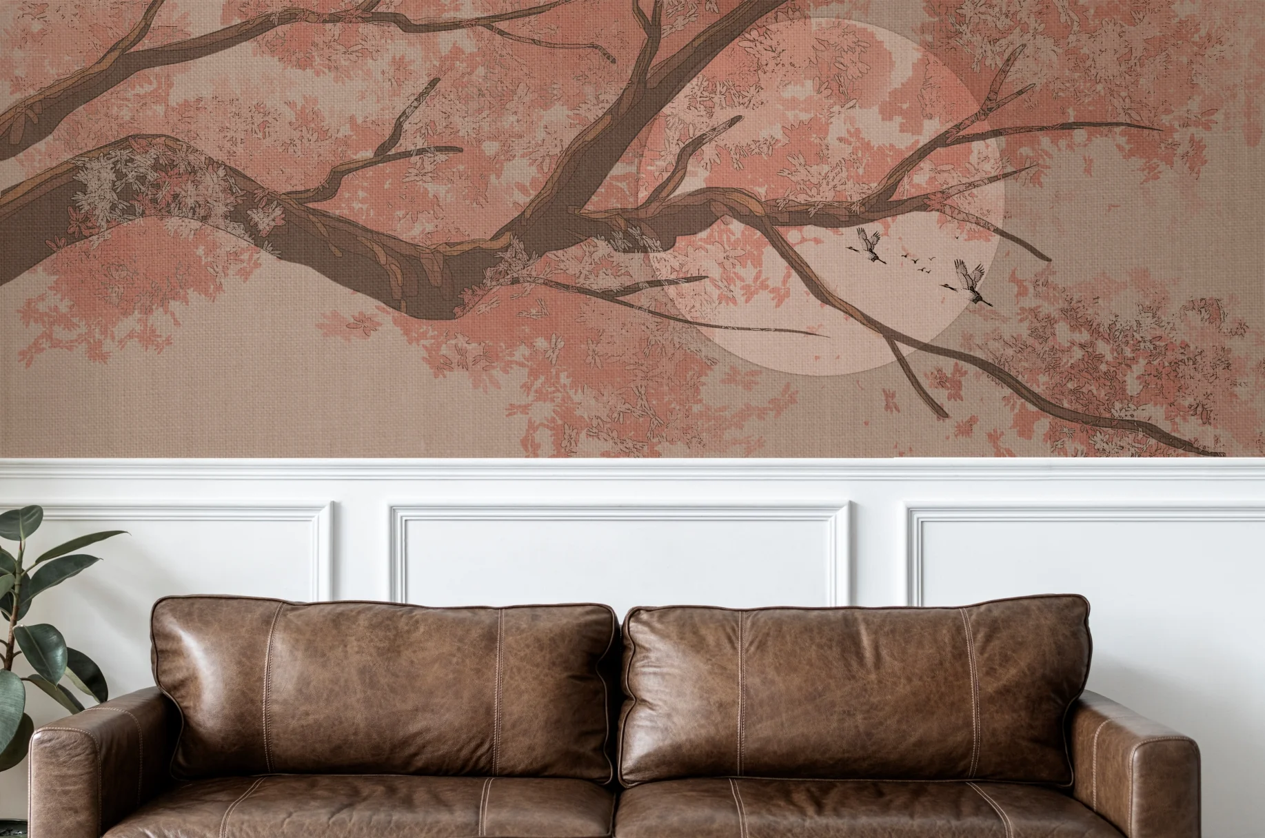 Create a serene and elegant atmosphere with this Under the Cherry Blossom Wall Mural. Featuring delicate floral branches and soft earthy tones, it brings timeless oriental beauty into luxury interiors.